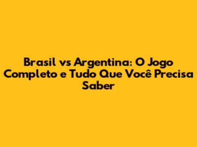 Brasil Vs Argentina: O Jogo Completo E Tudo Que Você Precisa Saber