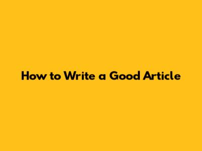 How To Write A Good Article
