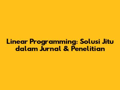 Linear Programming: Solusi Jitu Dalam Jurnal & Penelitian