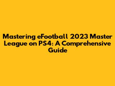 Hey guys, are you ready to dive deep into the world of eFootball 2023's Master League on your PS4? This mode is where you get to live the dream of managing your own football club, making strategic decisions, and leading your team to glory. It's a journey filled with excitement, challenges, and the satisfaction of building a winning legacy. In this comprehensive guide, we'll break down everything you need to know to not just play Master League, but to dominate it. We'll cover the basics, delve into advanced strategies, and give you some pro tips to help you become a true football manager. So, grab your controller, settle in, and let's get started on this exciting adventure!