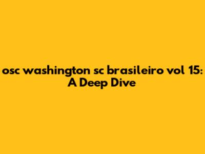 Osc Washington Sc Brasileiro Vol 15: A Deep Dive