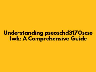 Understanding Pseoschd3170scse Lwk: A Comprehensive Guide
