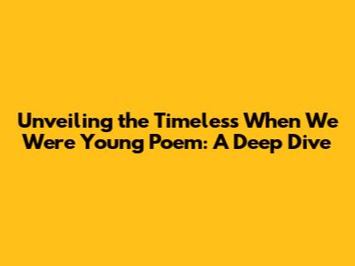 Hey everyone! Ever felt a wave of nostalgia wash over you, triggered by a song or a poem? Well, today, we're diving deep into one of those beautiful pieces that does just that: the poem, "When We Were Young". Seriously, it’s a classic, and for good reason! We're gonna explore the meaning, the words, and the overall feel of this amazing poem. Buckle up, buttercups, because this is going to be a fun ride through memory lane!